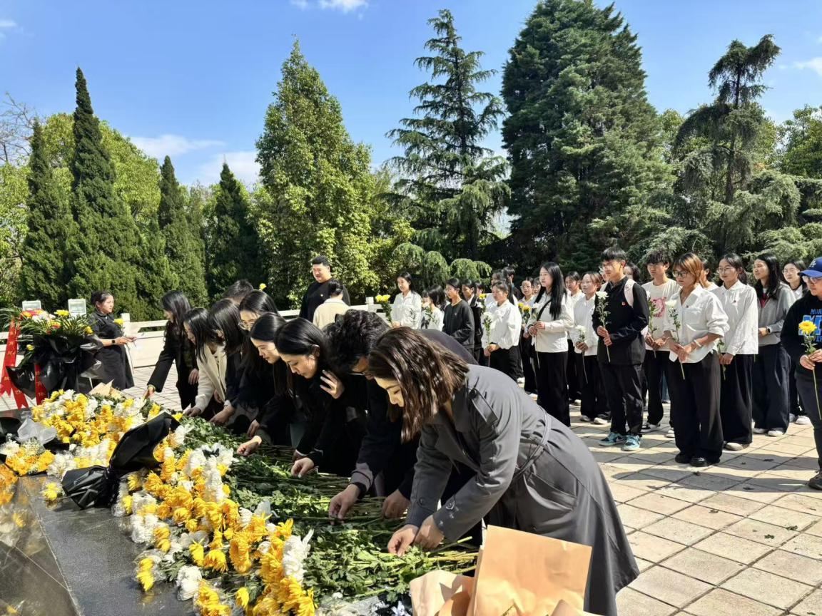 抵达三台山革命烈士陵园后,祭扫仪式在肃穆的氛围中正式开始。全体师生列队肃立于烈士纪念碑前,向为民族独立、人民解放和国家富强英勇献身的革命先烈们敬献鲜花,并集体默哀致敬,表达对英魂的深切哀思与无限崇敬。