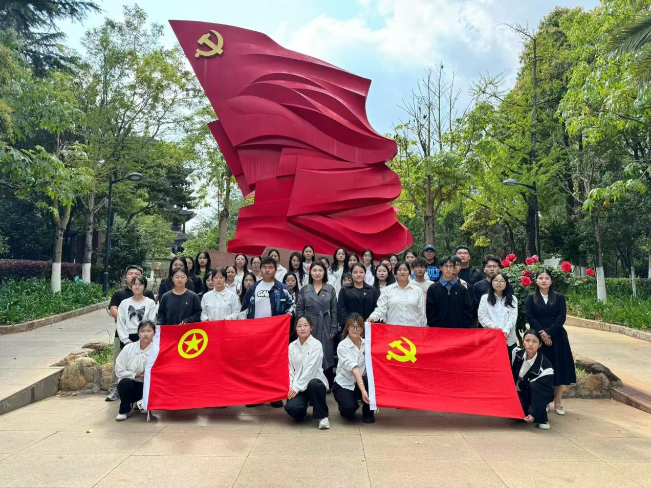 下午16时,仪式结束后,全体师生在烈士纪念碑前合影留念,记录下这一庄严而富有教育意义的时刻。