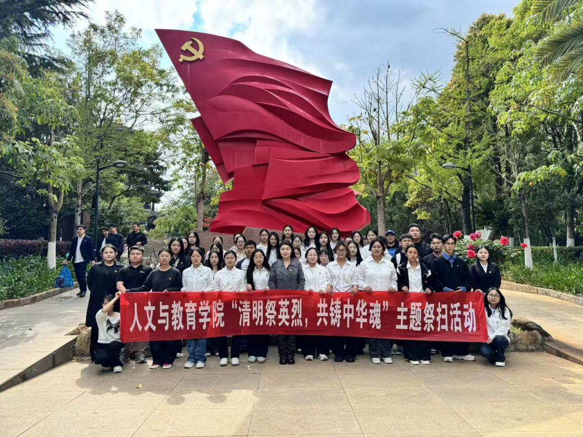 清明前夕,翠柏凝春。为深切缅怀革命先烈,传承红色基因,弘扬爱国主义精神,2026年4月1日下午,昆明传媒学院人文与教育学院组织师生代表共60余人,前往呈贡区三台山革命烈士陵园,庄重举行“清明祭英烈,共铸中华魂”主题祭扫活动。此次活动通过沉浸式的仪式教育,引导广大青年学子铭记历史、感恩奋进,在追思中坚定理想信念,汲取前行力量。