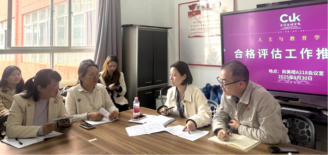 2025年9月30日,人文与教育学院在尚美楼A218会议室召开本科合格评估工作推进会,全面部署迎评攻坚阶段各项任务。会议由教学副院长李俊蓉副教授主持,院长朱昱霖副教授、各专业负责人、教研室主任及专职教师参会。