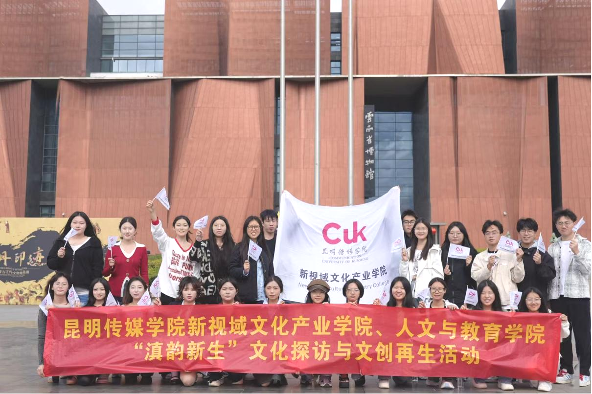 2025年10月16日,昆明传媒学院新视域文化产业学院与人文与教育学院组织2023级文化产业管理专业26名学生,在专业教师王旭的带领下,前往云南省博物馆与官渡古镇,开展以“滇韵新生”为主题的文化调研与文创实践活动。此次“行走的课堂”旨在引导学生深入历史现场与市井生活,汲取文化养分,实现从理论认知到创意实践的跨越,进一步坚定文化自信,增强文化传承与创新的责任意识。
