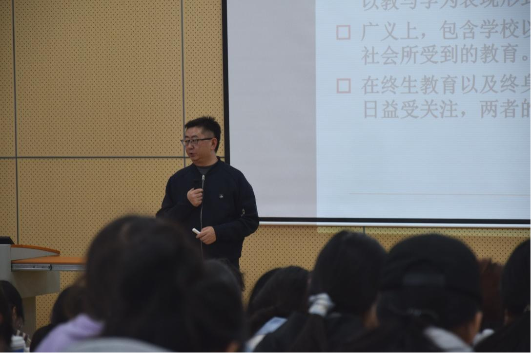 讲座伊始,小学教育教研室主任赵娅含代表师生对杨俊博士的到来表示了热烈欢迎与衷心感谢。她指出,在师范生培养的起步阶段,树立正确的教育观、人生观至关重要,期待同学们能从杨博士的分享中汲取智慧,为未来的教育之路奠定坚实的思想根基。