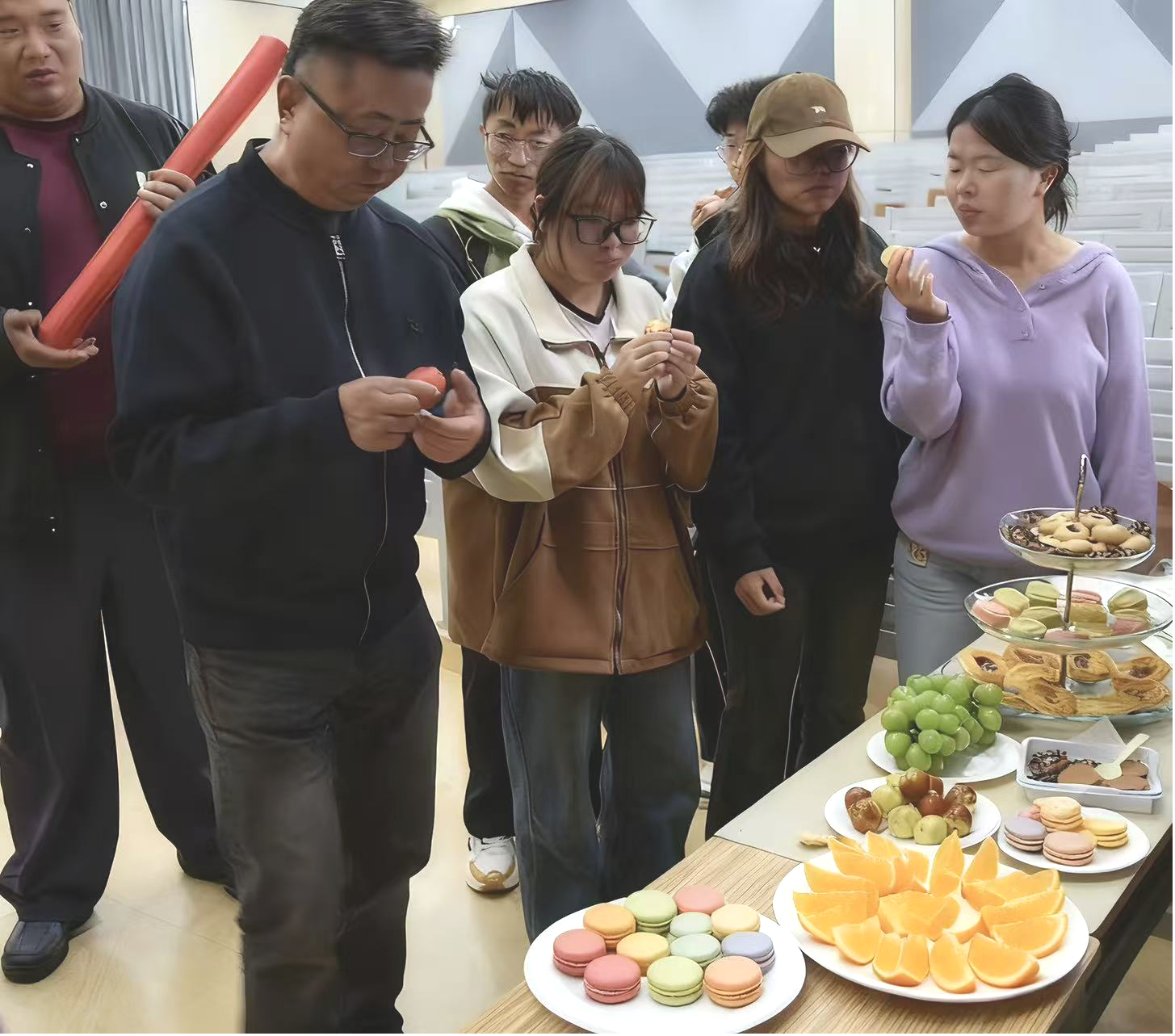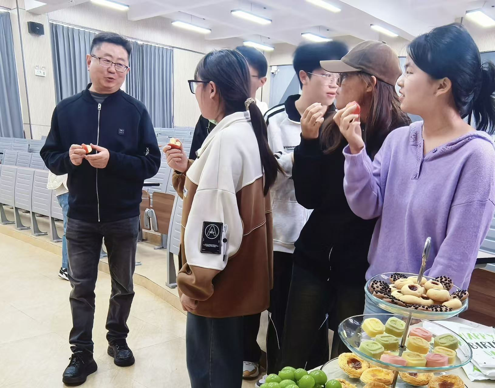 在轻松愉快的氛围中,师生们与杨俊博士边享用冷餐边交流,进一步探讨教育理念和实践经验。这种近距离的互动,不仅拉近了彼此的距离,也让大家感受到学术与生活交融的独特魅力。